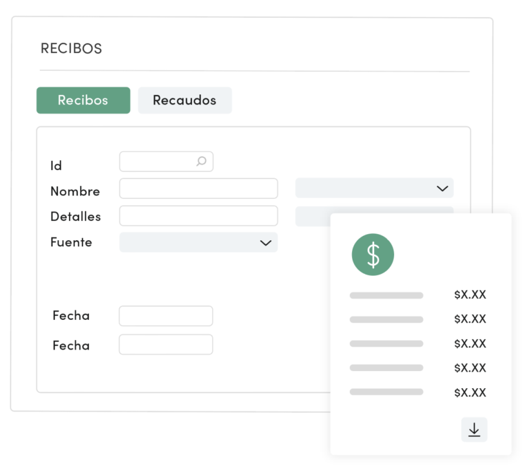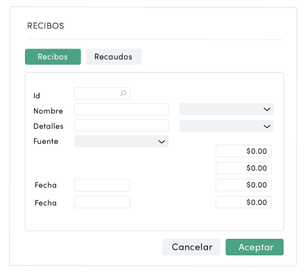 Registra los cobros de recaudos de distintos conceptos y genera los recibos al momento.