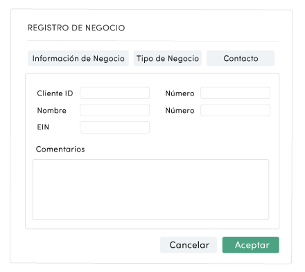 Permite registrar de forma efectiva el tipo de negocio e identificar el status de negocio, el NAICS, el número de regulación de hacienda, entre otros.