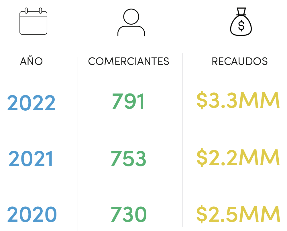 En la siguiente gráfica se muestra una comparación entre la cantidad de comerciantes y el número total de dinero recaudado a través de VIRTUAL COLLECTOR© de los últimos tres años en el Municipio Autónomo de Dorado.
